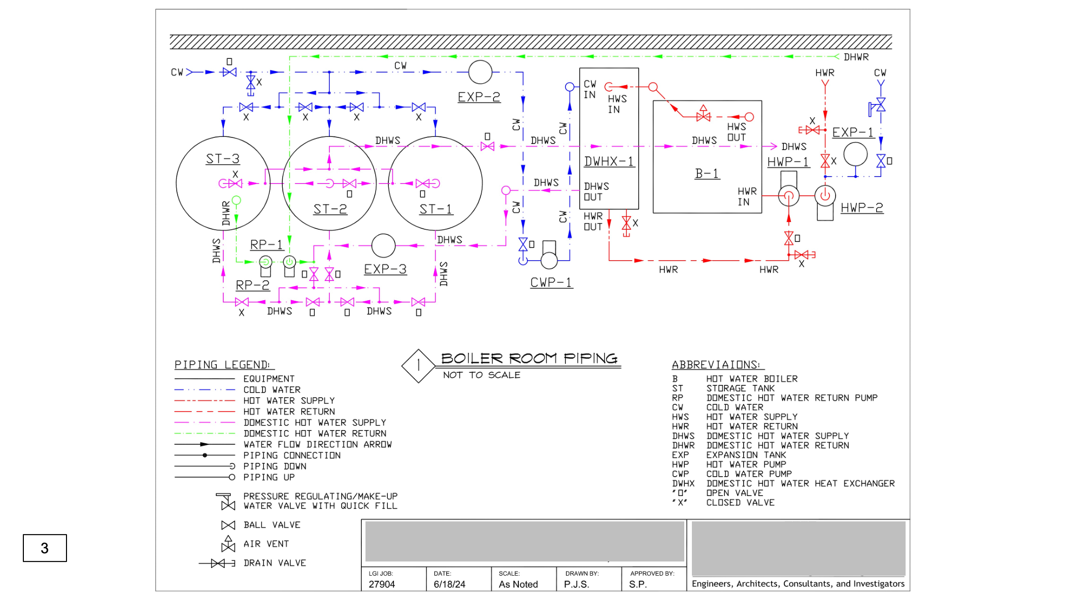 Schematic diagram of subject hot water supply